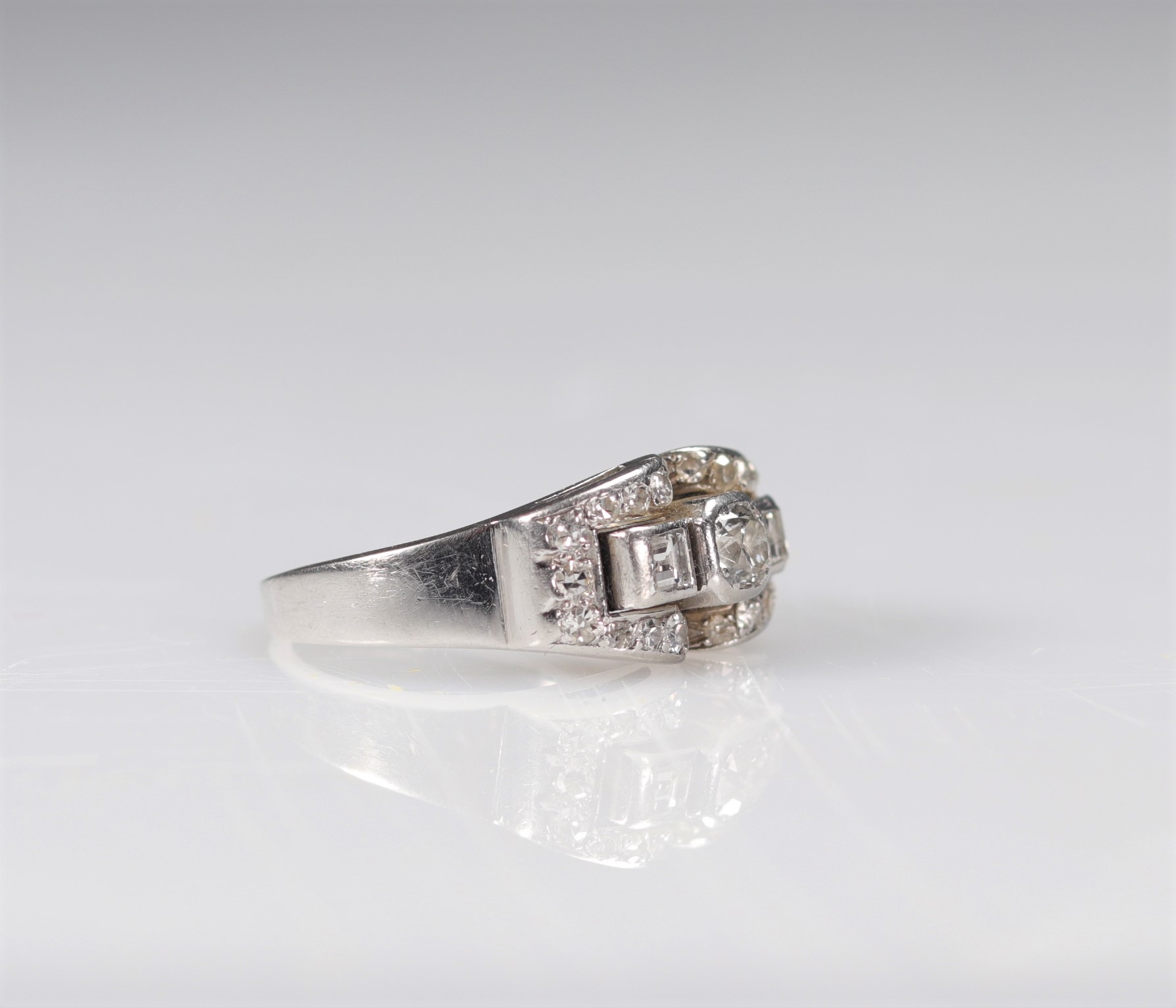 Bague en platine Art Déco diamants 28p (8.8gr)