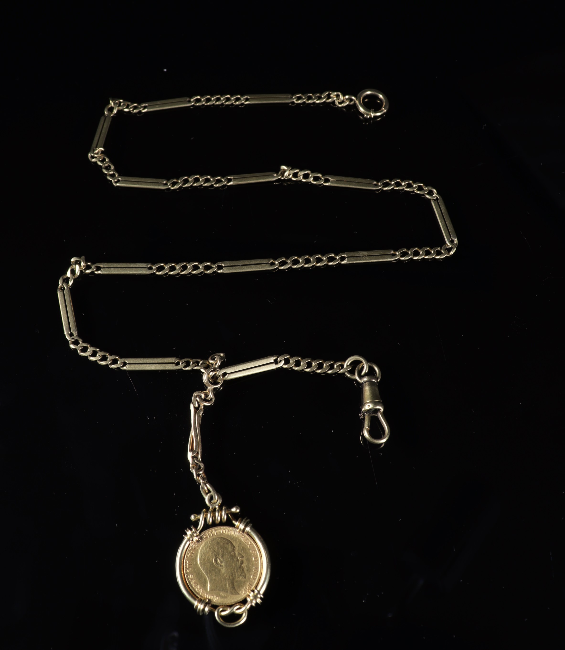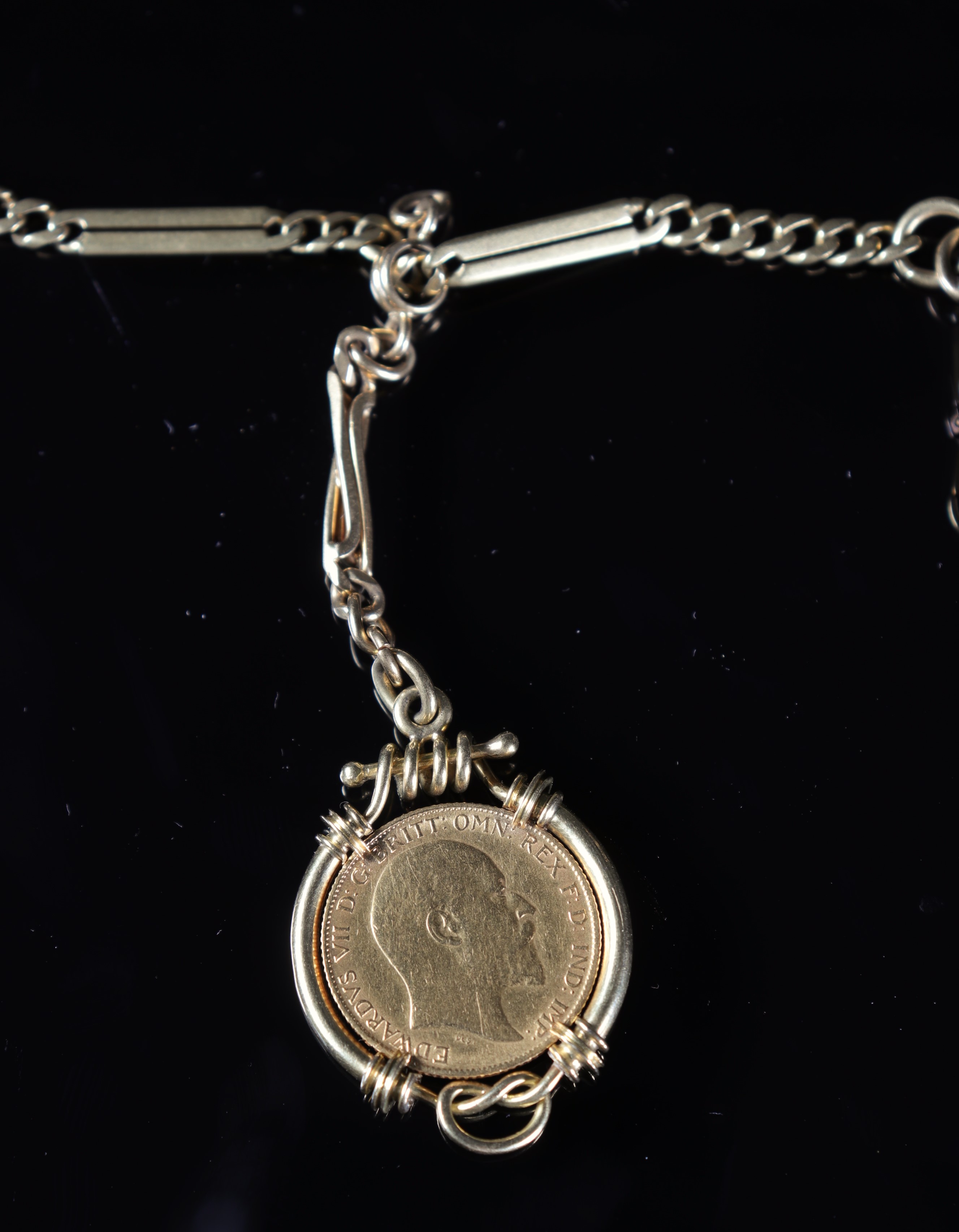 Pièce Souverain Or Edouard VII montée sur chaine or (34.50gr)