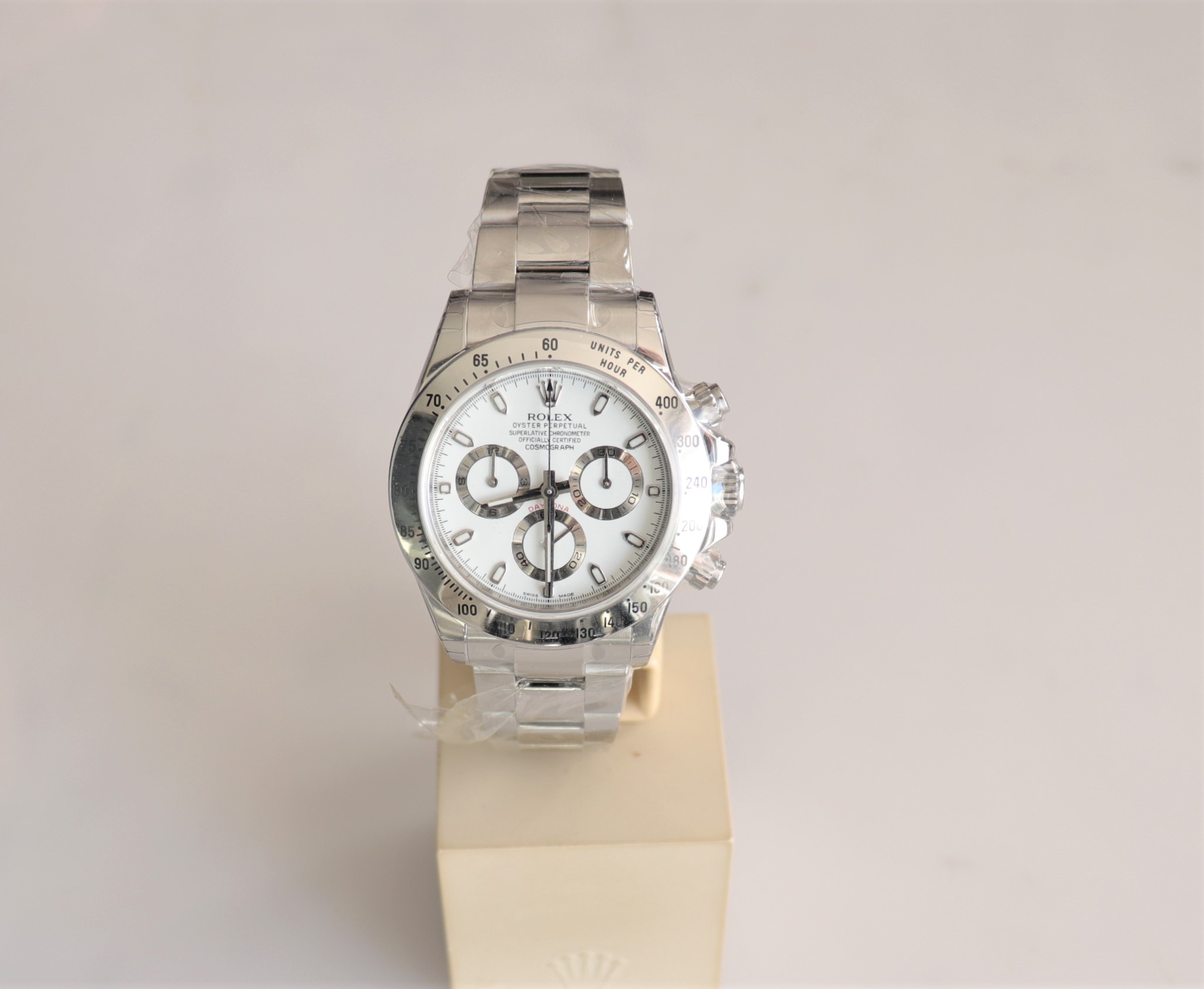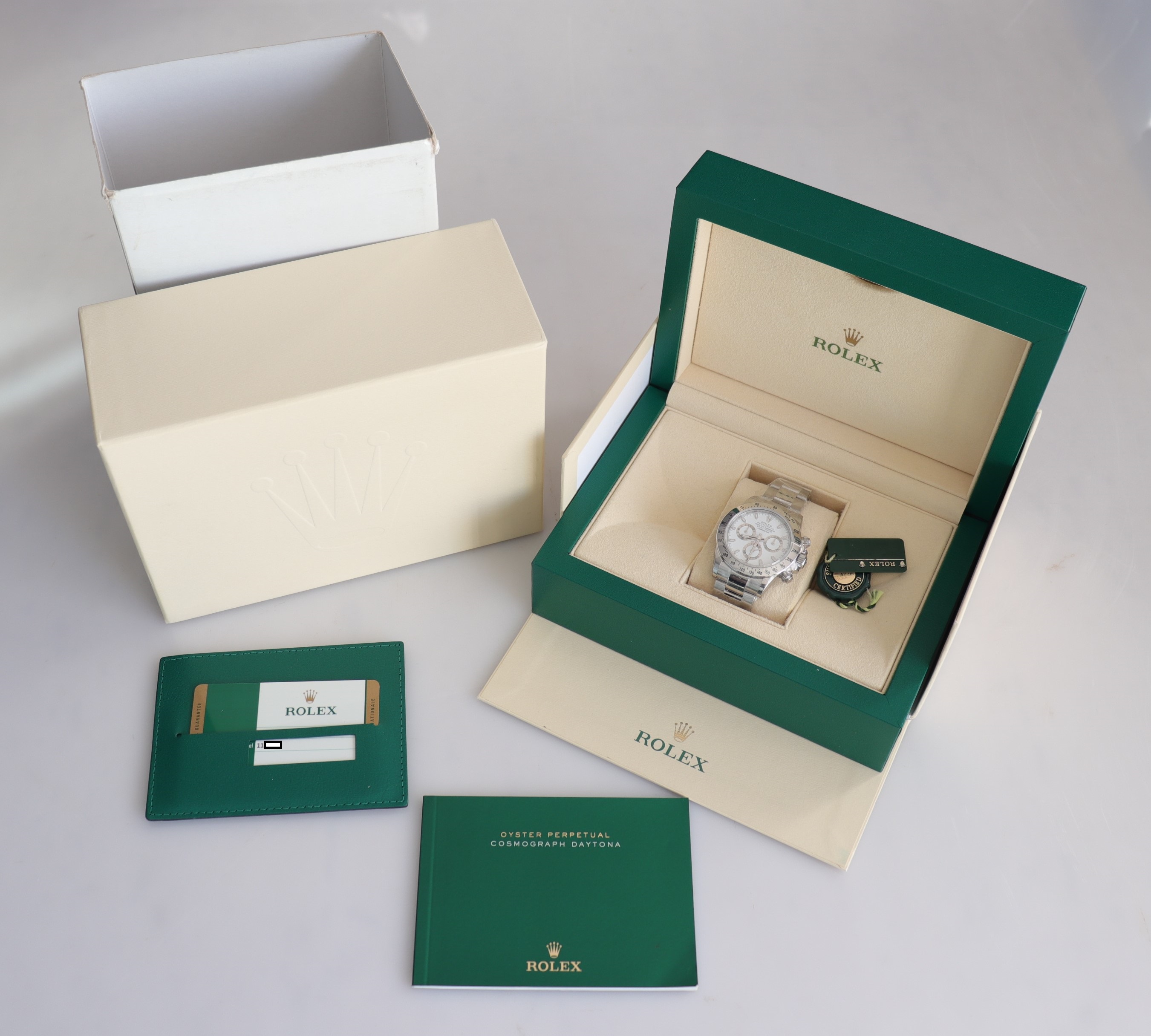 Rolex Daytona Acier jamais portée Cadran Blanche Chromalight 2016 Boite et papier d’origine 116520
